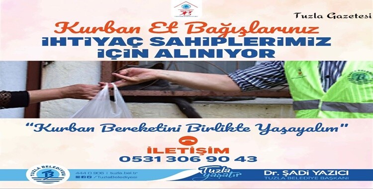 Tuzla Belediyesi Kurbanın Bereketini Birlikte Yaşayalım. Kurban et bağışlarınız ihtiyaç sahiplerimiz için alınıyor. Siz de bağış yapmak isterseniz ekiplerimizi arayabilirsiniz.